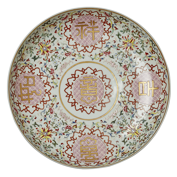 The exterior floral decoration on gilt ground, together with a 'Famille Rose' porcelain plate with Guangxu mark (3).