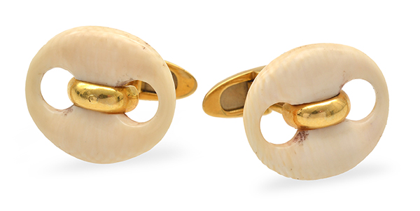 The pierced oval ivory panels set with 18ct gold terminals, signed.