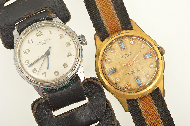 TWO VINTAGE WRISTWATCHES INCLUDING AN OLYMP WRISTWATCH TO A GOLD LINED CASE AND ONE BY DUNKLINGS