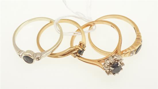 A COLLECTION OF FOUR RINGS SET WITH SAPPHIRE AND DIAMONDS, IN 9CT GOLD