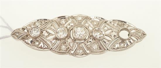 AN ART DECO DIAMOND PENDANT IN WHITE METAL (ONE DIAMOND DEFICIENT)