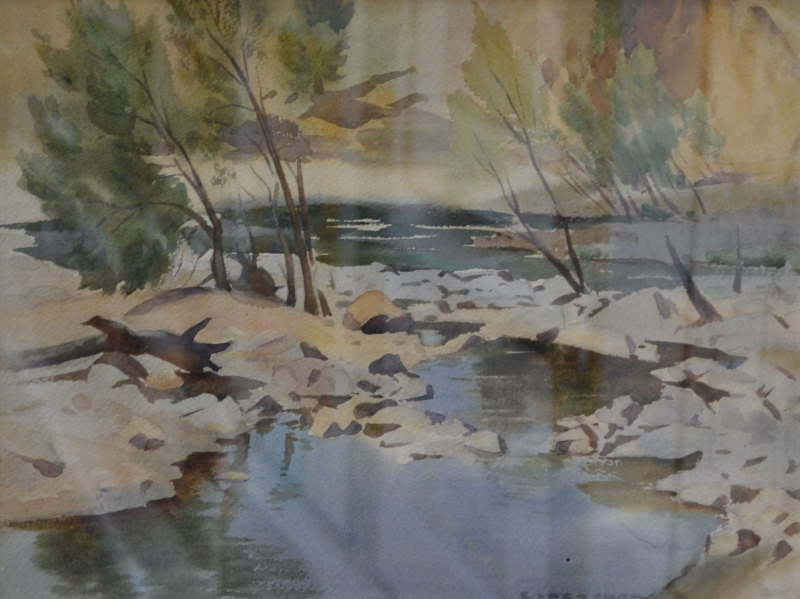 JOHN ELDERSHAW, ROCKY RIVER, WATERCOLOUR, 30 X 40CM
