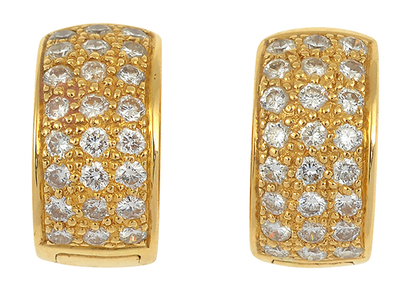 Of huggie design, each pave set with round brilliant cut diamonds mounted in 18ct gold.