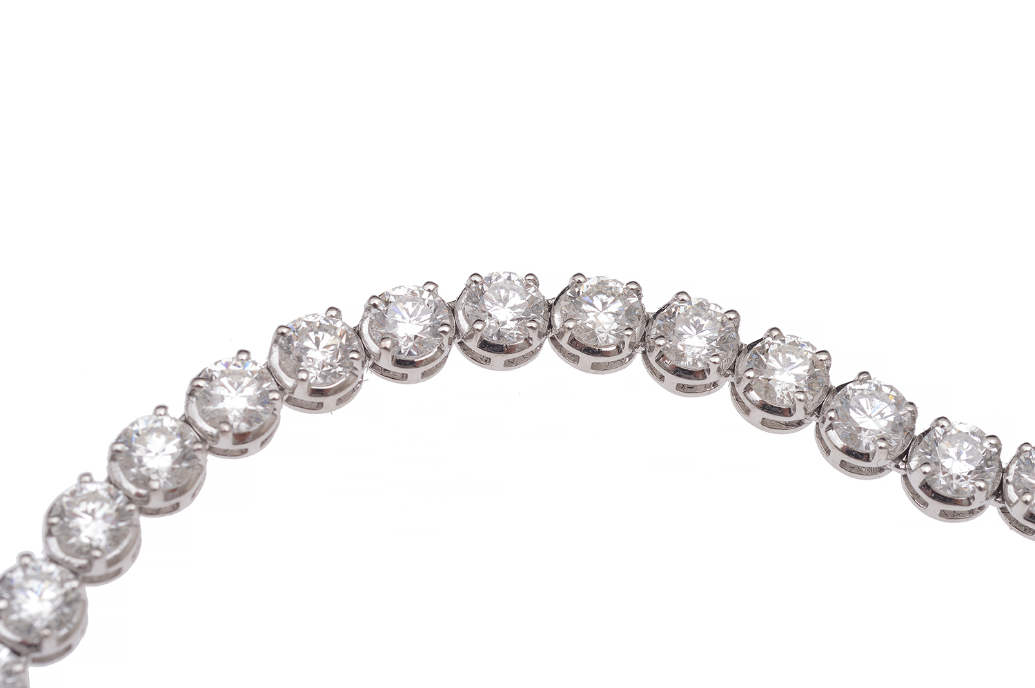 Comprising eighty one round brilliant cut diamonds totalling 25.10cts, mounted in 18ct white gold, total length 430mm.