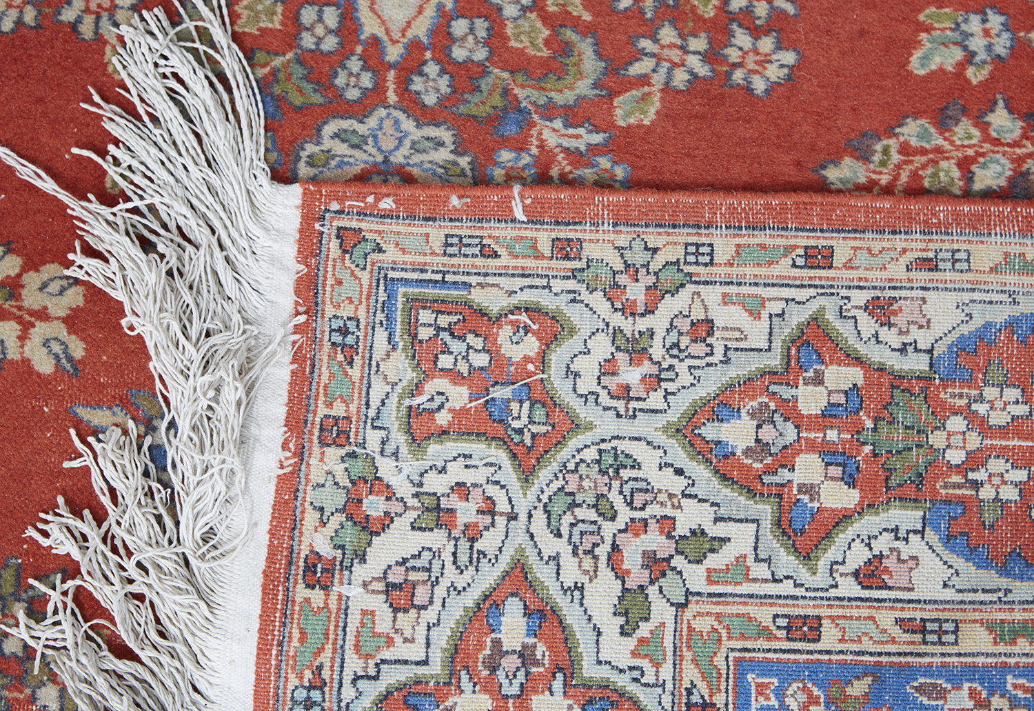 A HAND WOVEN WOOL RUG, KASHMIR MID 20TH CENTURY