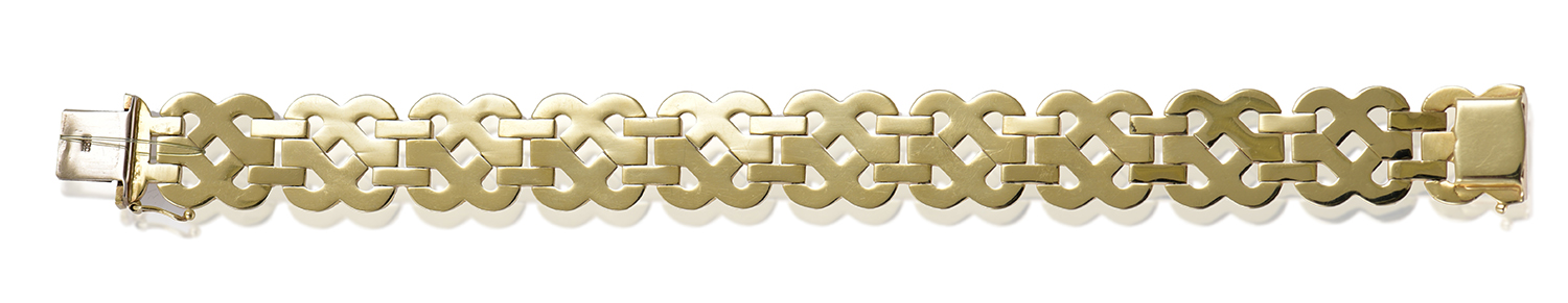 Of Celtic knot design with brush and polished finish, mounted in 14ct gold, total length 190mm.
