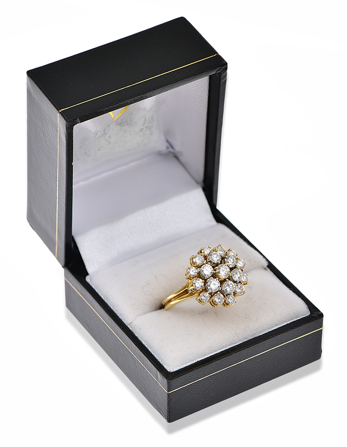 Comprising nineteen round brilliant cut diamonds totalling 2.40cts, mounted in 18ct gold, ring size N.
