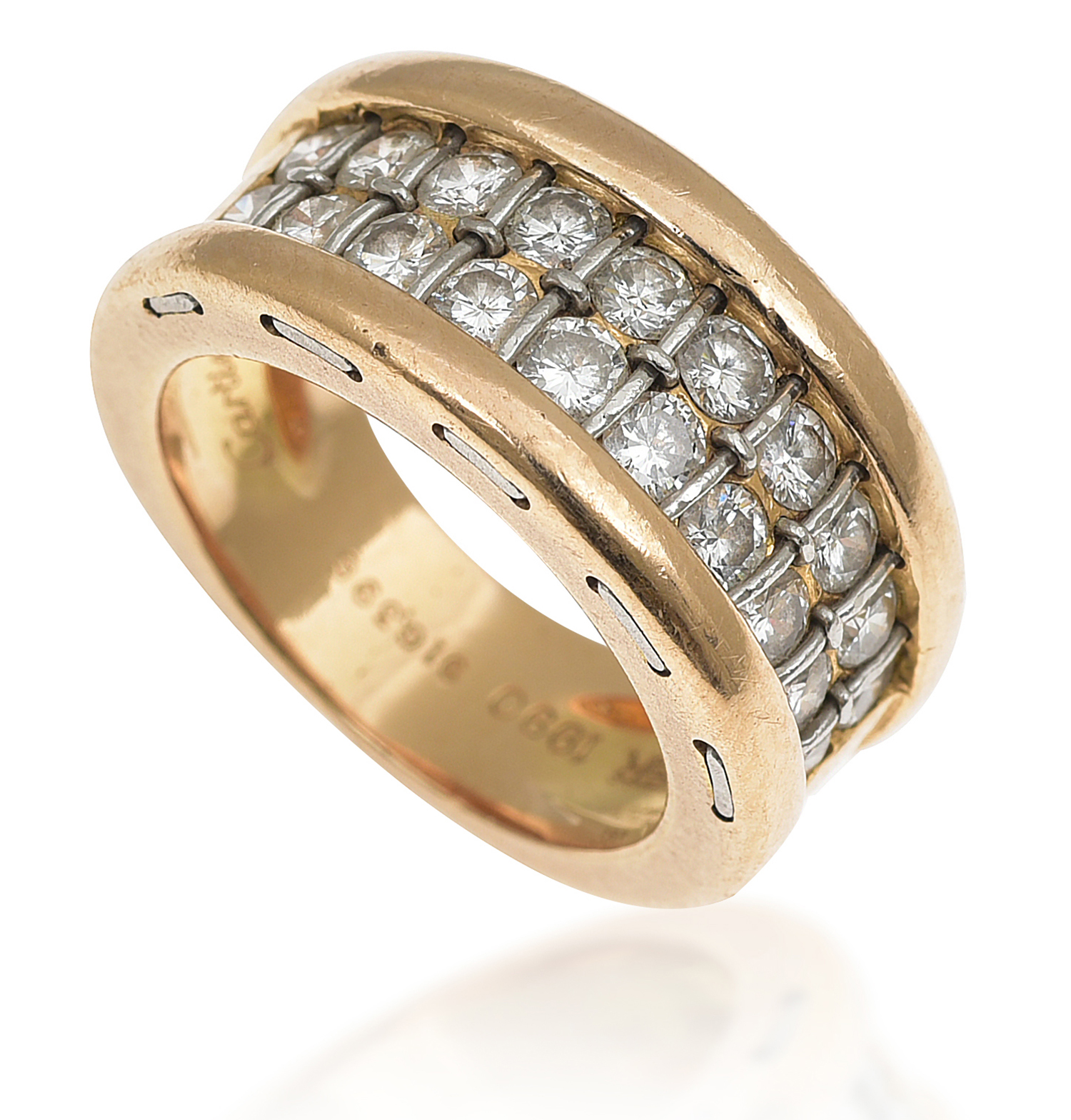 Comprising twenty round brilliant diamonds in a double row channel setting, mounted in 18ct gold, signed, reference 916396, ring size K.