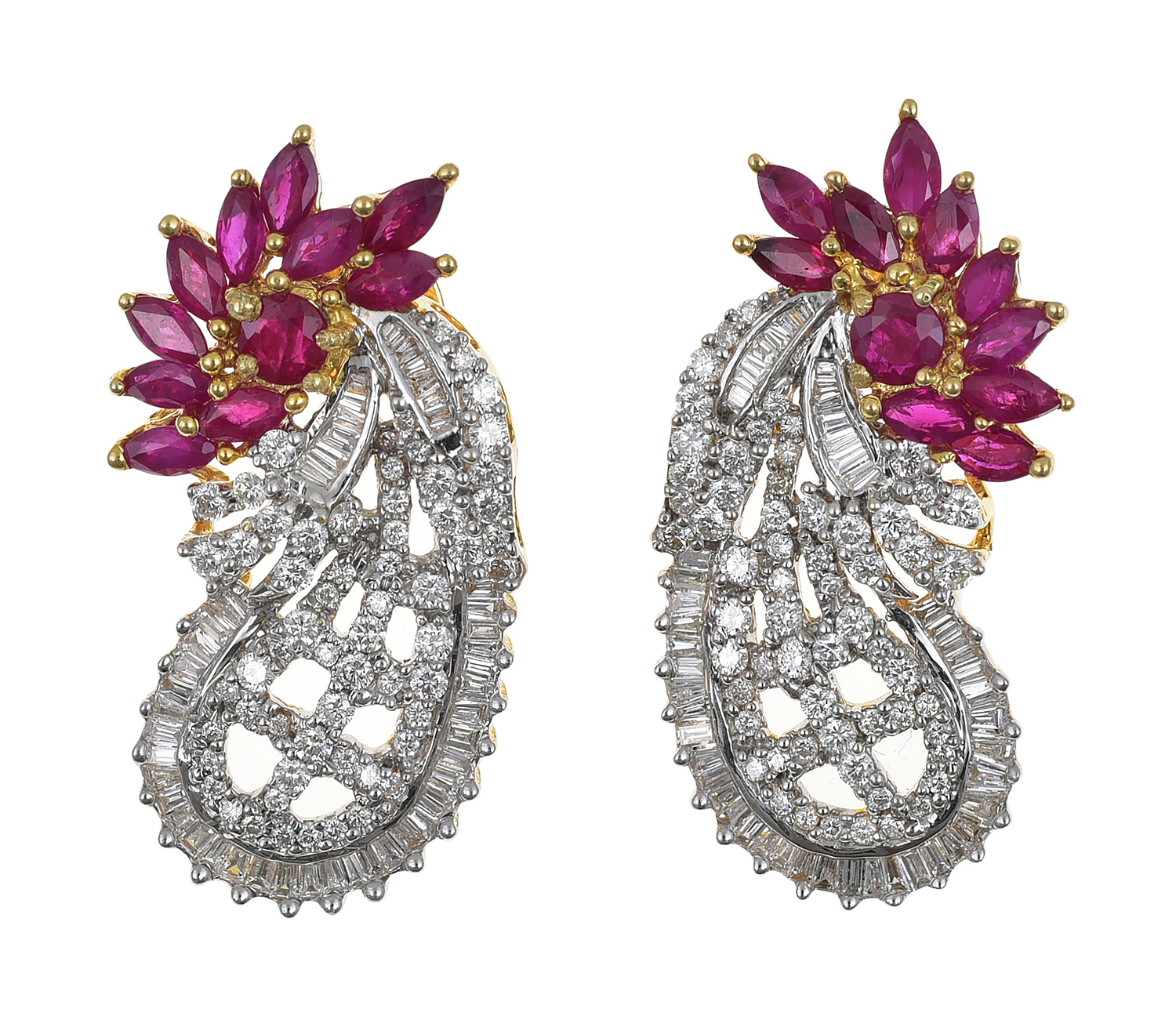 This suite is handcrafted and presents in as new condition and stones appear secure in their settings. Earrings have threaded posts and butterfly fittings. Diamonds are of good commercial colour and clarity. Rubies appear well matched, round rubies are translucent.