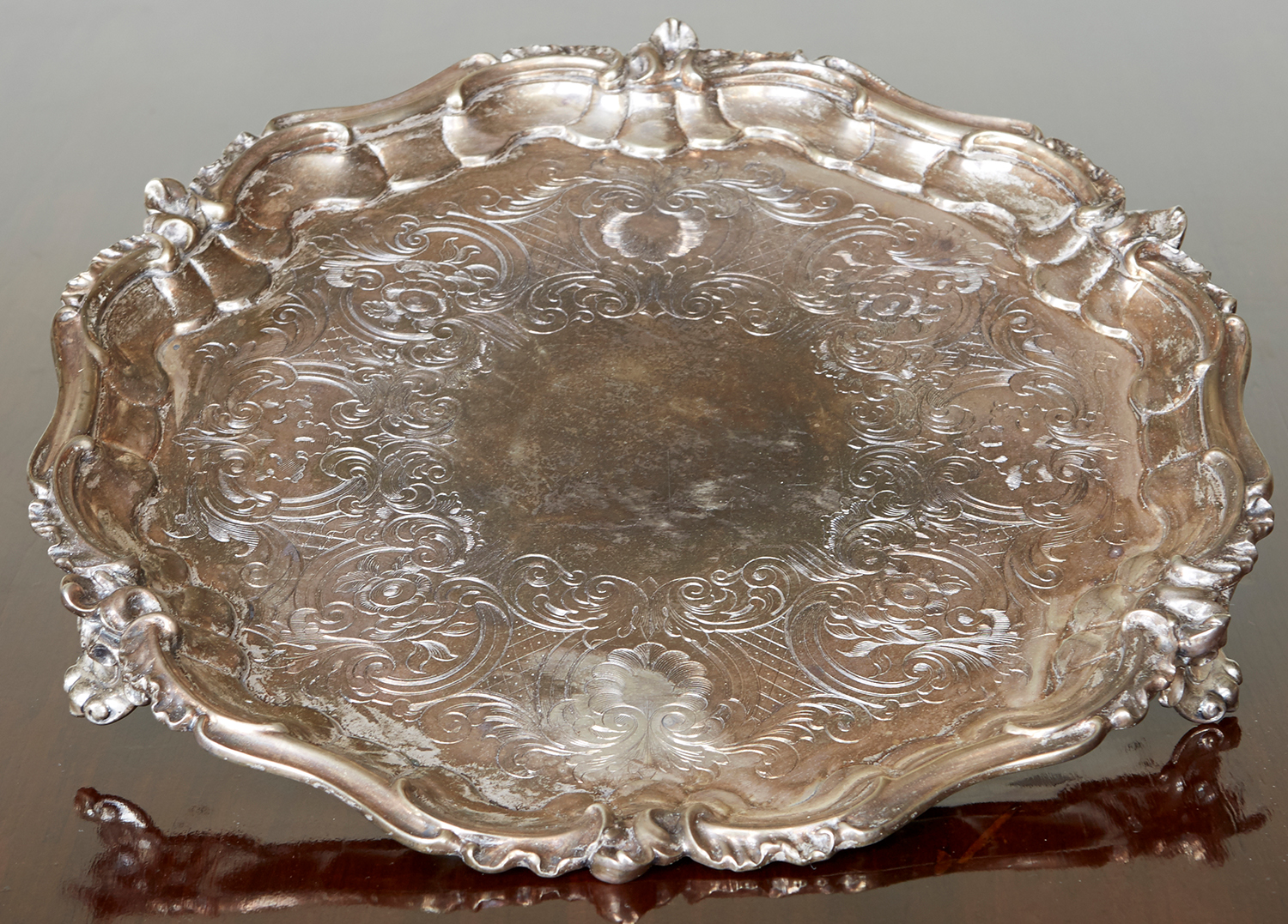 AN EARLY VICTORIAN STERLING SILVER TRAY BY CHARLES REILY & GEORGE STORER, LONDON 1844