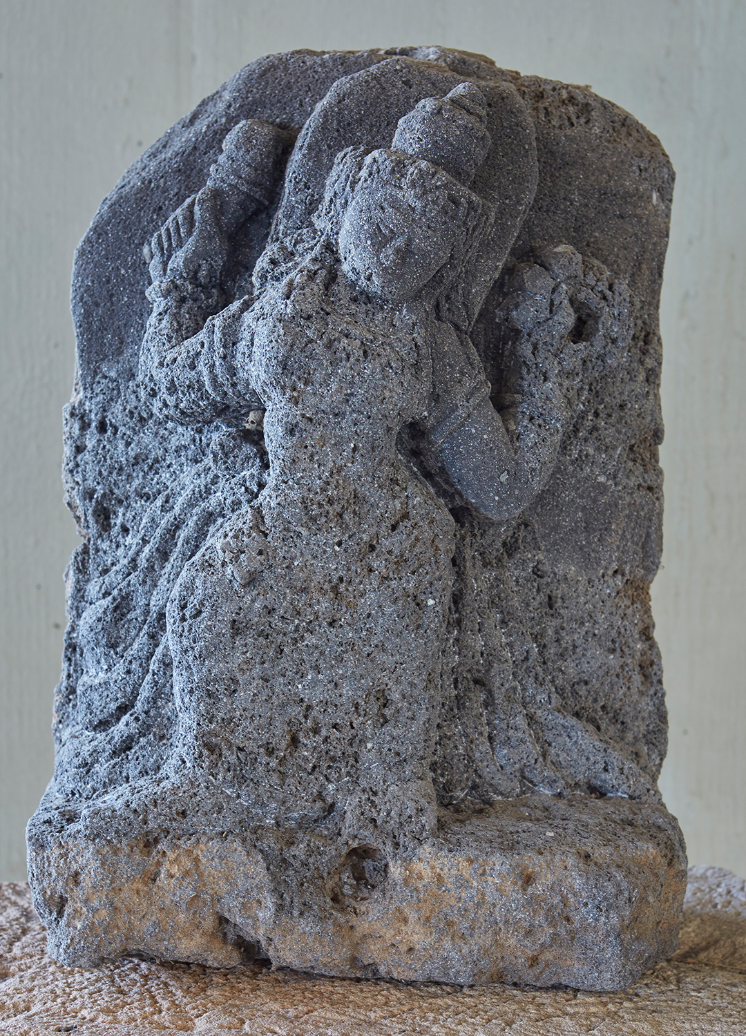 A CARVED VOLCANIC STONE FEMALE HINDU DEITY, POSSIBLY MAHAKALI, JAVA INDONESIA, CIRCA 10TH-13TH CENTURY