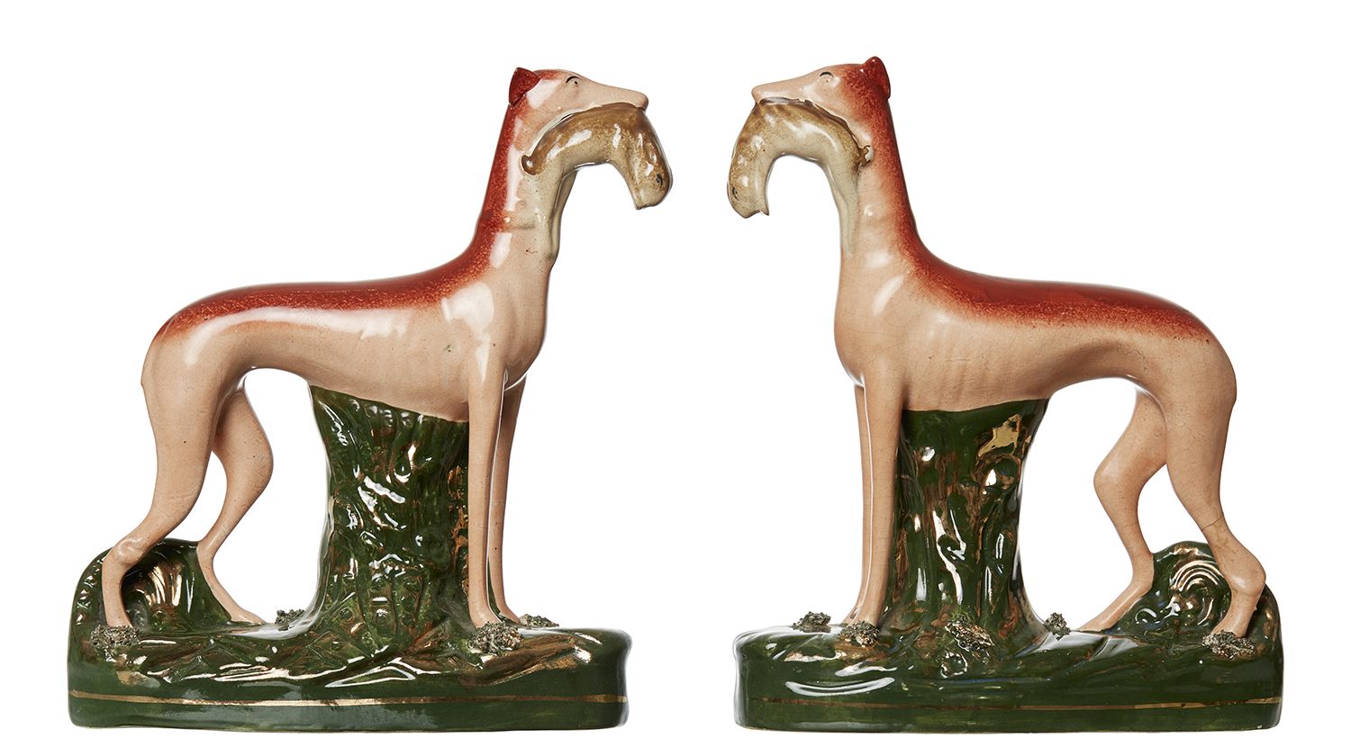 A COLLECTION OF STAFFORDSHIRE GREYHOUNDS, 19TH CENTURY AND LATER