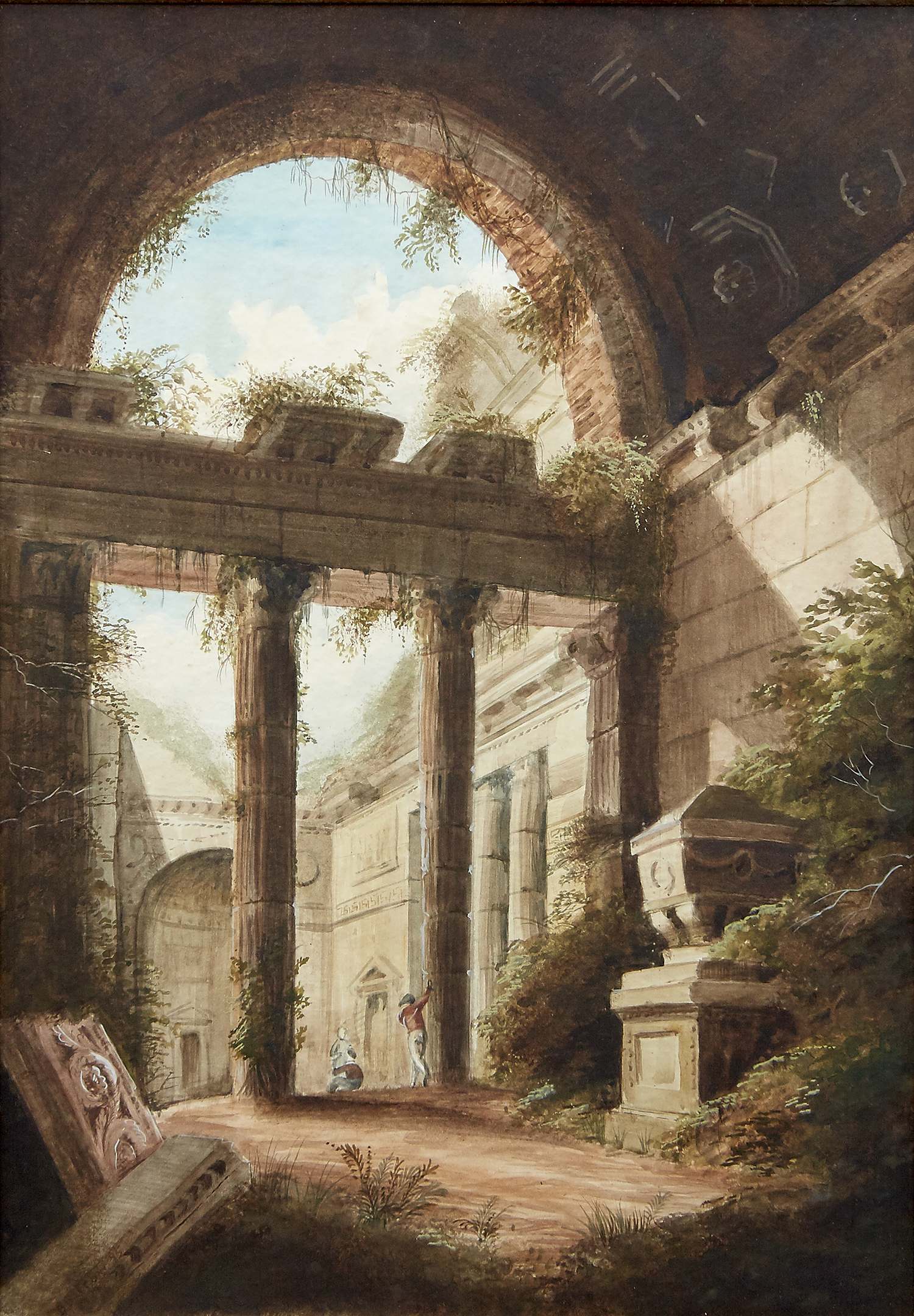 After Charles Louis Clerisseau (French 1721-1820), Italian Ruins with Travellers (2), 1985