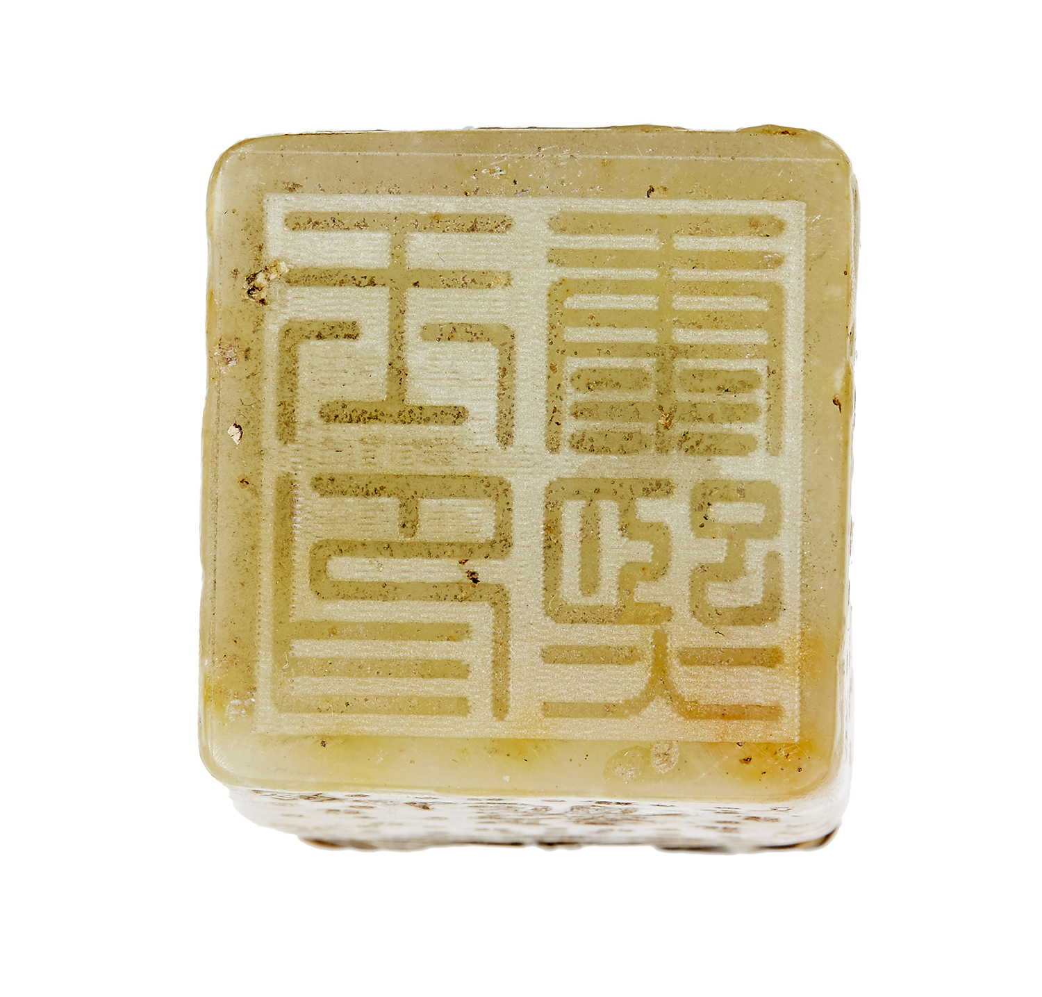 A CHINESE SOAPSTONE SEAL OF SQUARE-FORM