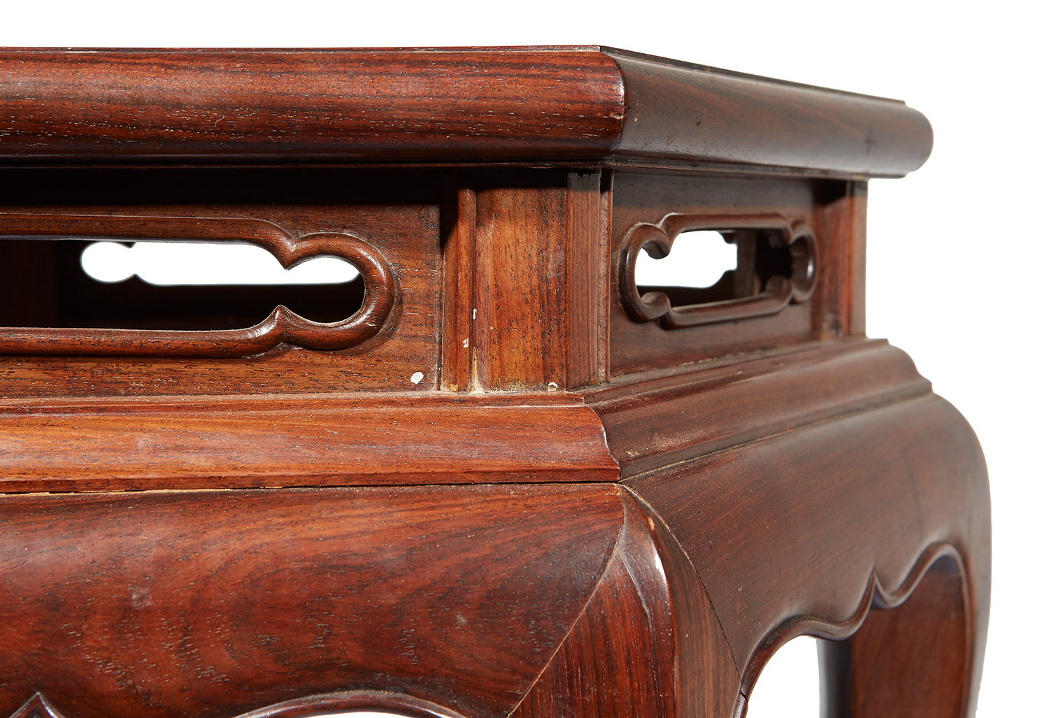 The natural colour of the yellow rosewood apparent on the table surface, with six elegantly tapered legs, the table, with finely cut-out shaped cartouches to the side, 73cm high