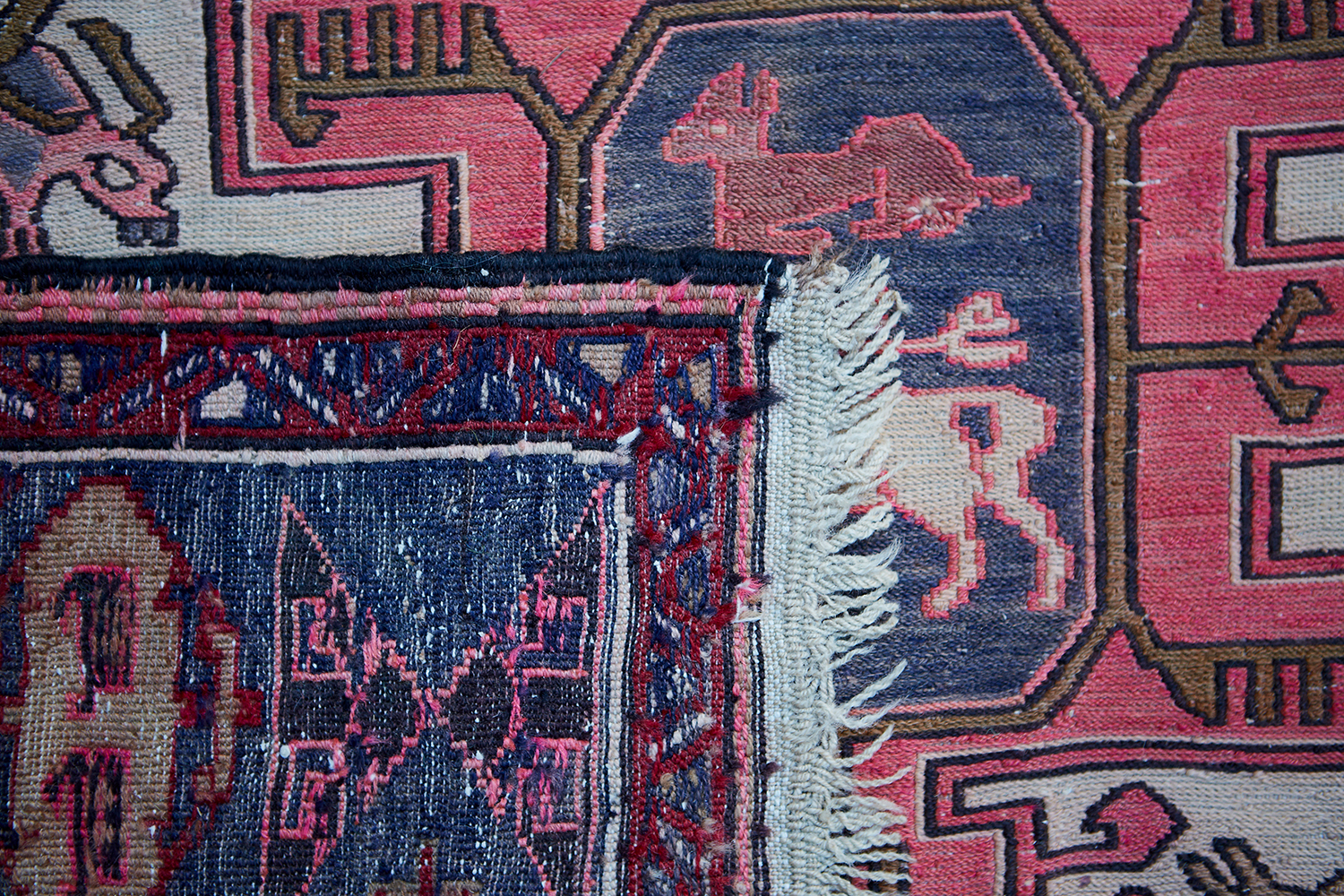 With alternating animal motif in geometric designs, 208 length x 121cm width