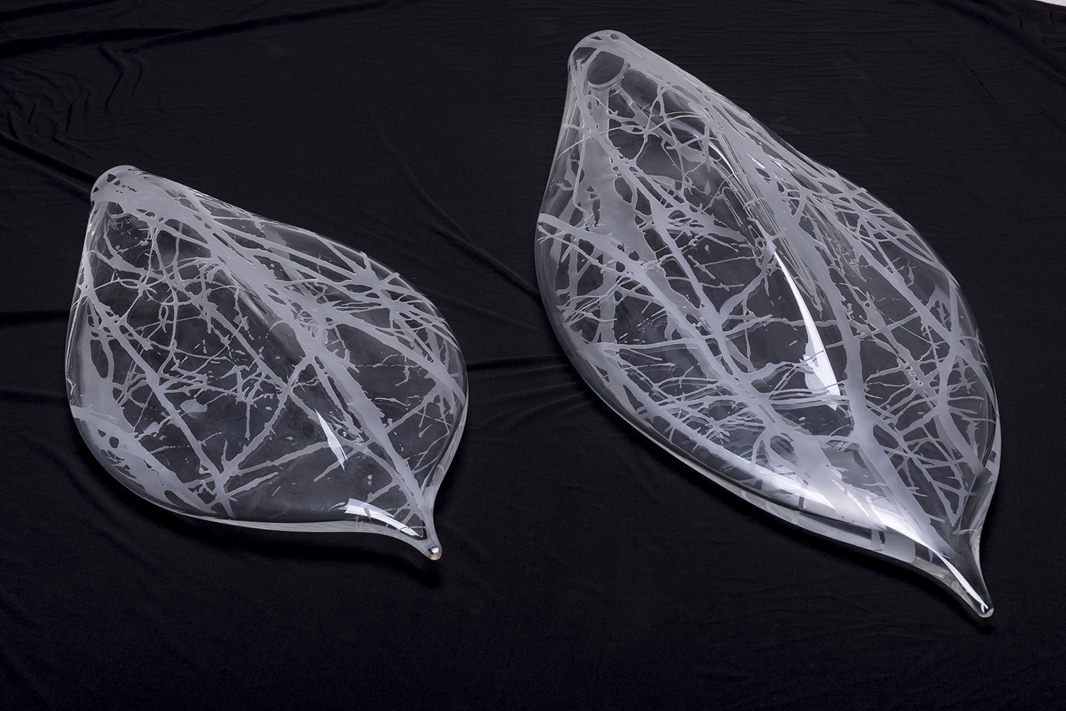 Stands upright. Signature engraved on bottom edge for both. No signs of chips or cracks to glass. Very few scratches, if any. Excellent condition.