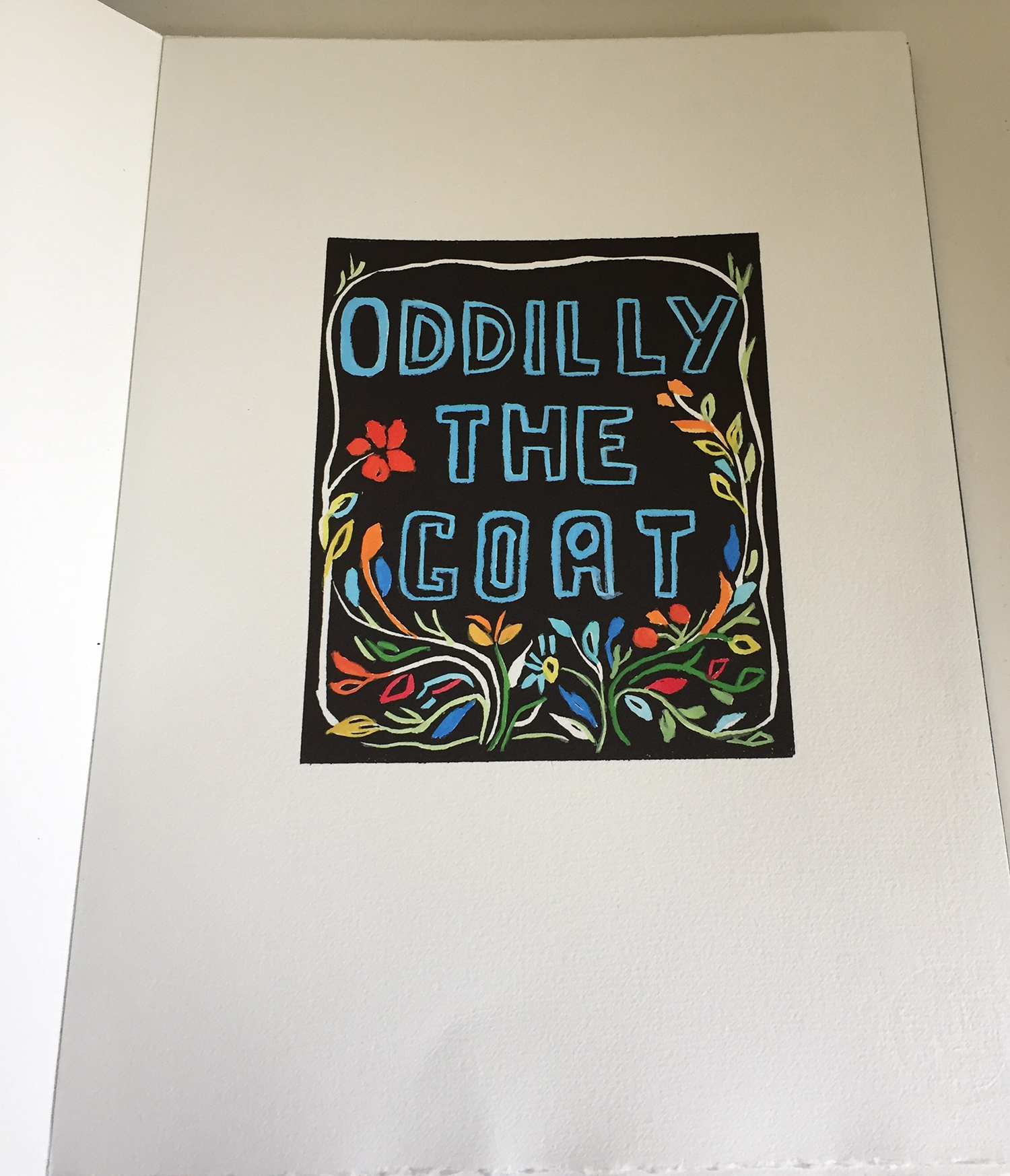 [AN AUSTRALIAN ARTIST'S BOOK]: HOLMES, Lorraine. ODDILLY THE GOAT. super roy 4to; initial letters inscribed by hand in gouache, hand-coloured linocut illustrations. Hand bound by Helen Wadlington using the Japanese 'butterfly' binding technique. Holmes-Wadlington, 1988. No. 17 of 50 copies, signed by Lorraine Holmes. Rare. (Muir 4163; BAL 2:475.)