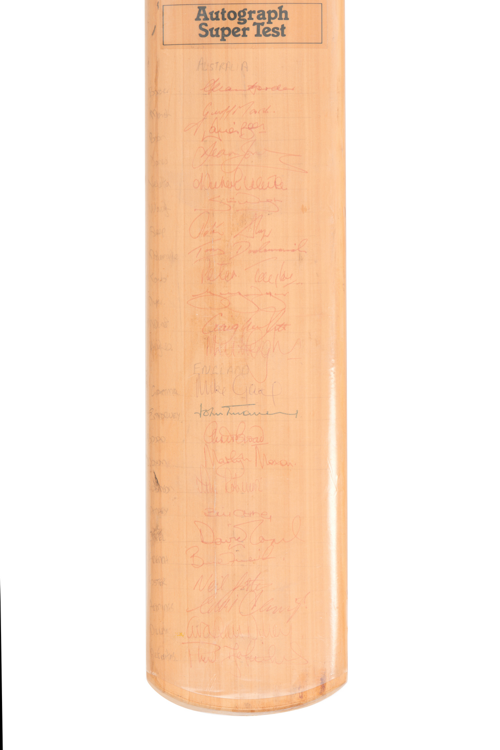 "COUNTY - AUTOGRAPH SUPER TEST" CRICKET BAT SIGNED BY 1986-87 AUSTRALIA & ENGLAND TEAMS, LEONARD JOEL LOCAL DELIVERY: MEDIUM