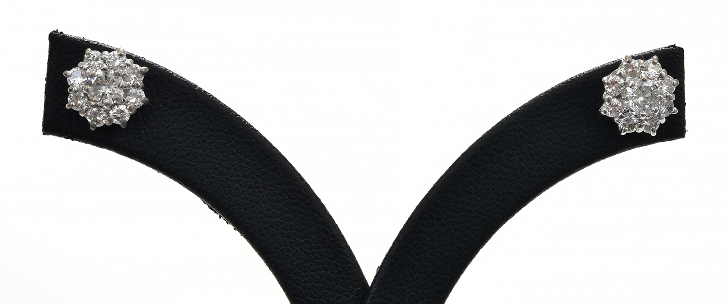 A PAIR OF DIAMOND CLUSTER EARRINGS - Each centrally set with a round brilliant cut diamond, surrounded by a further eight round brilliant cut diamonds, totalling 1.62cts, mounted in 18ct white gold.
