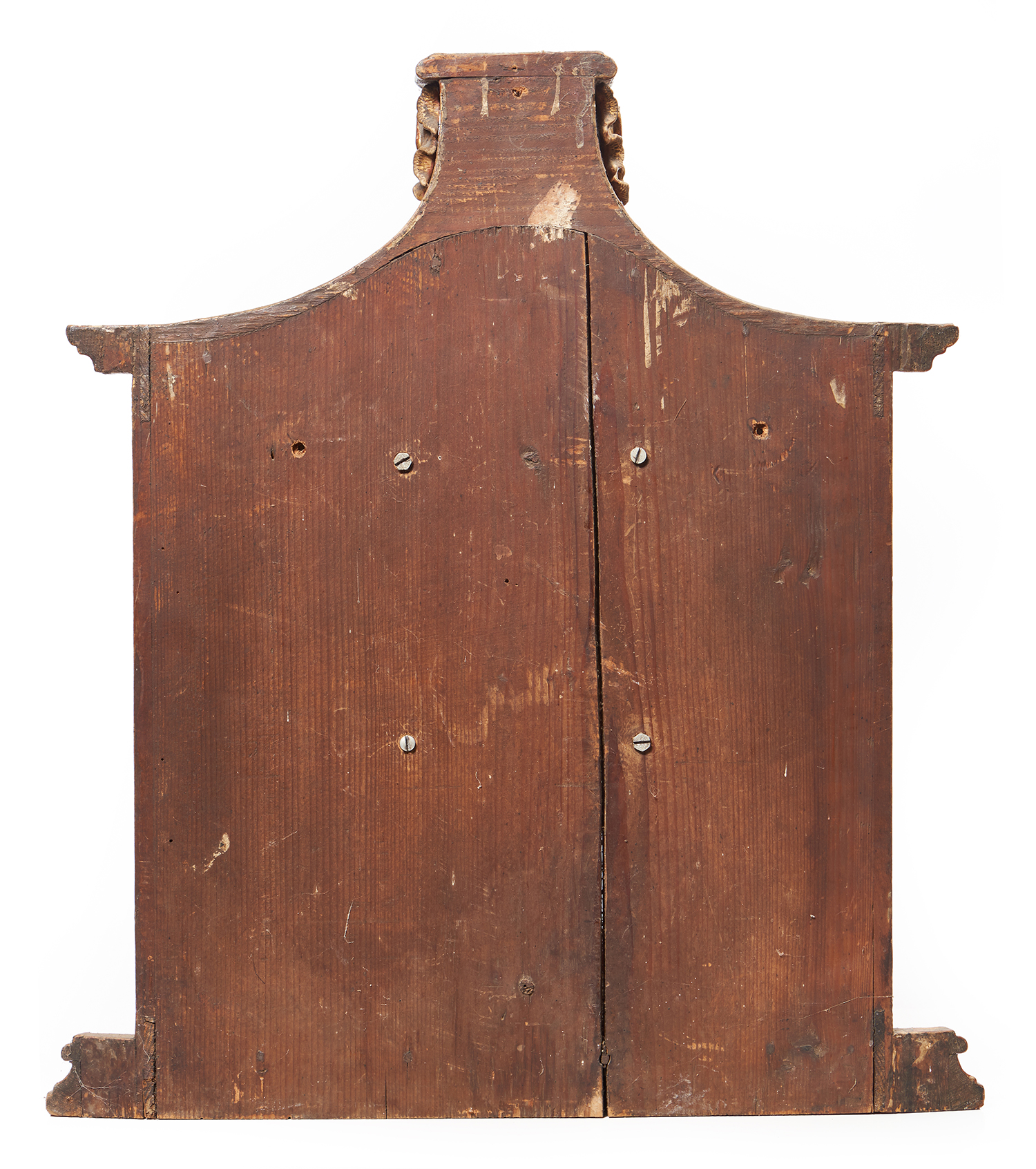 The decorative gilt wood case, with a domed top. Two train fusee movement, striking on bell