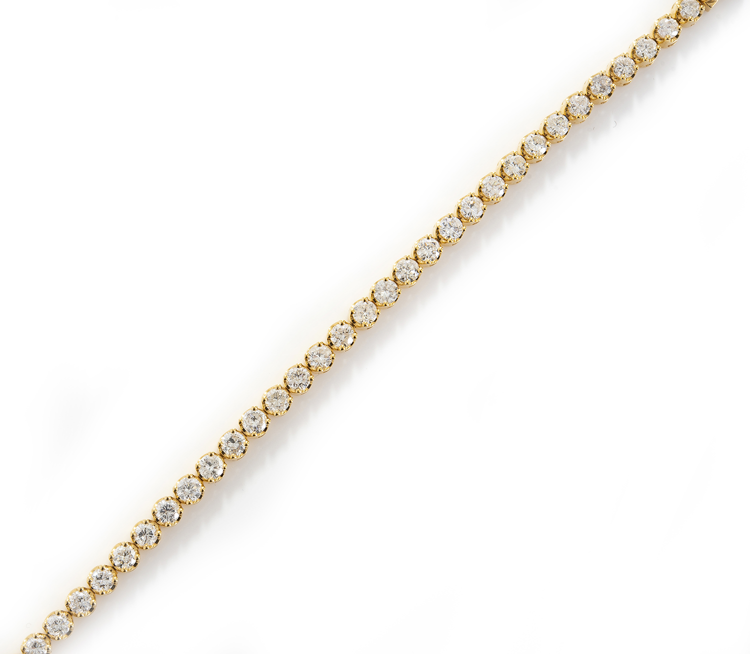 Comprising round brilliant cut diamonds totalling 7.12cts, mounted in 18ct gold, total length 180mm.
