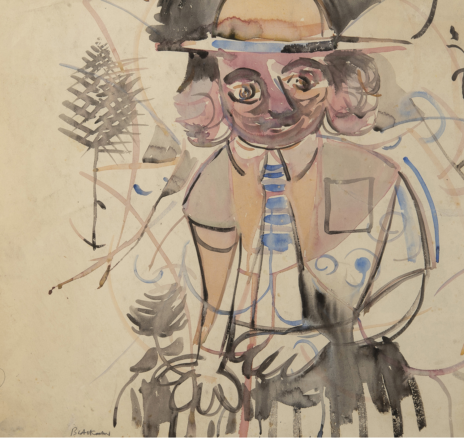 CHARLES BLACKMAN (born 1928) Trumpeter 1954 enamel paint on board