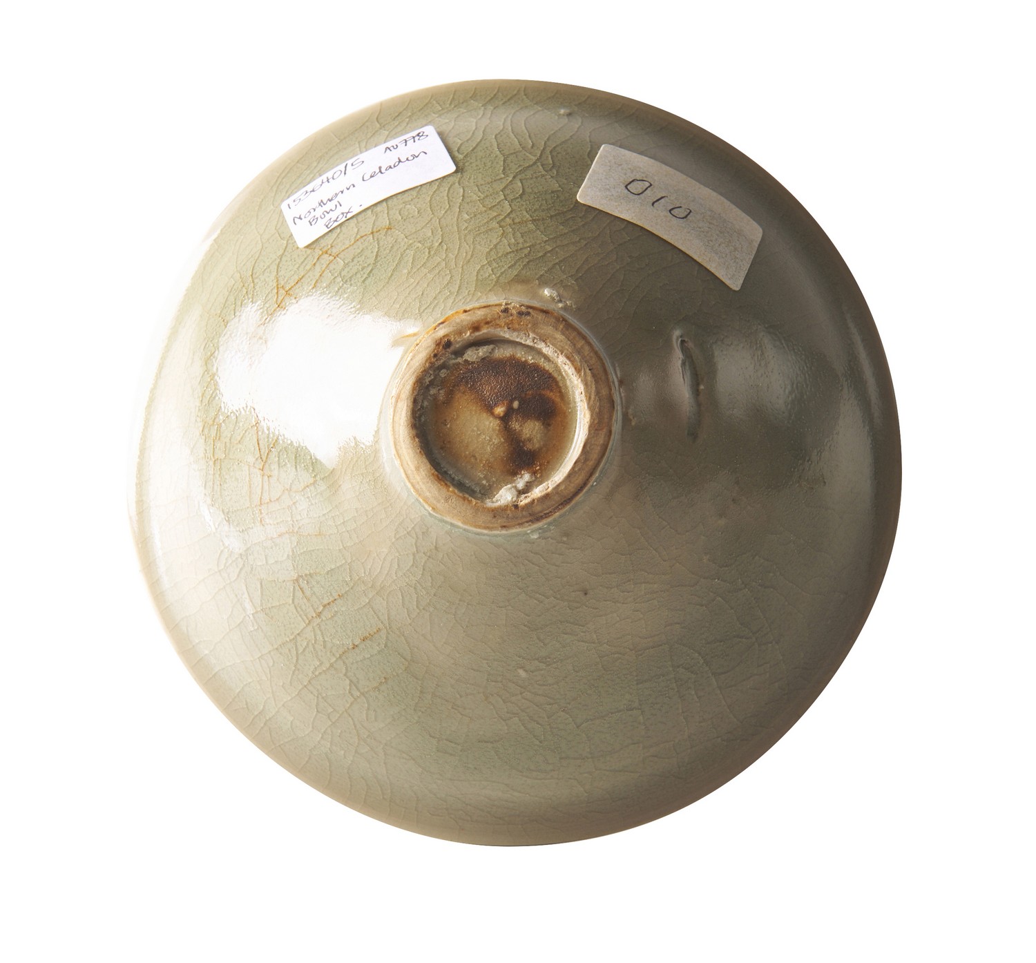 some red soil staining in the crackle to one section both interior and exterior.