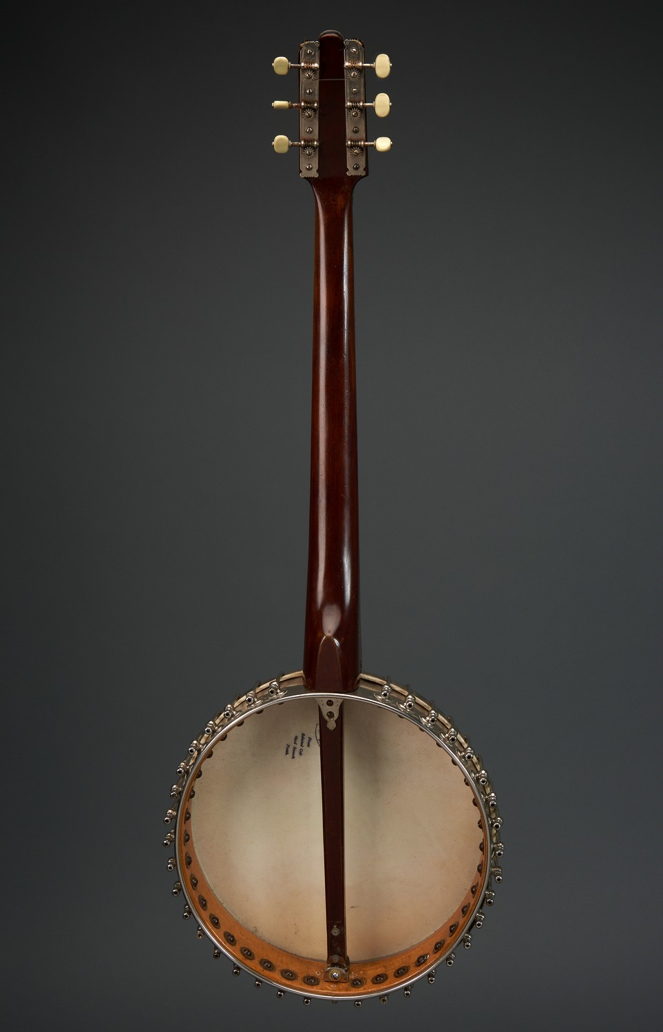 Open back, with 38 brackets, the headstock plated in nickel, and mother-of-pearl inlay to the fingerboard