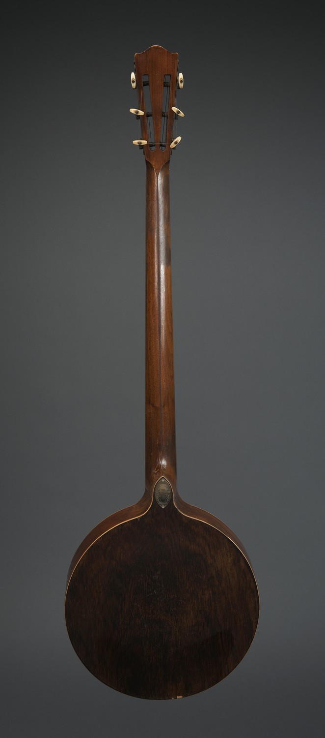 The brass impressed plate on the heel reads 'The New Windsor Patent Zither Banjo A.O. Windsor, 94 Newhall St. Birmingham, England'. Contains Brazilian rosewood.
