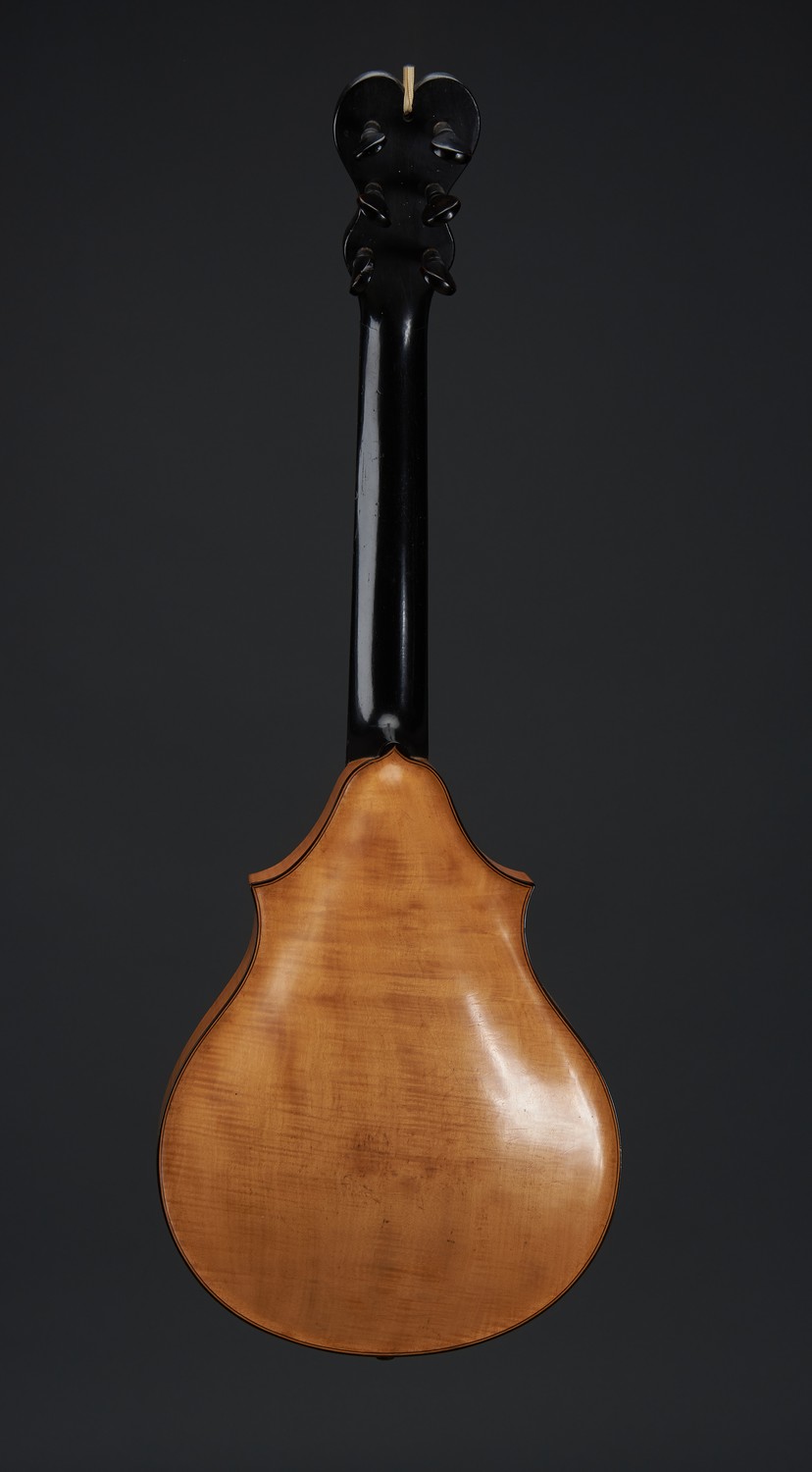 With ebonised string inlay to edges. Incised maker's mark to headstock.