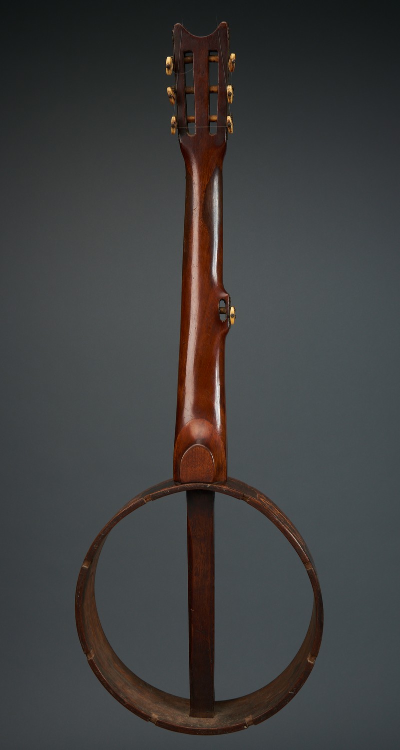The fingerboard and resonator decorated in Tunbridge ware. Contains Brazilian rosewood.