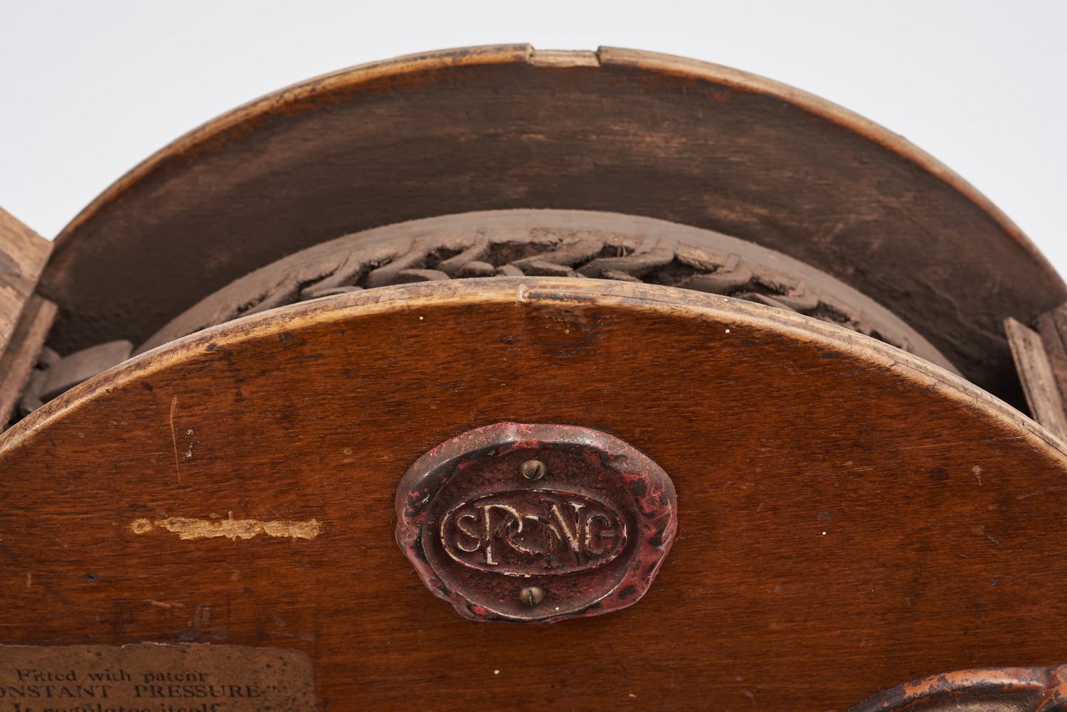 AN ANTIQUE OAK CASED KNIFE SHARPENER