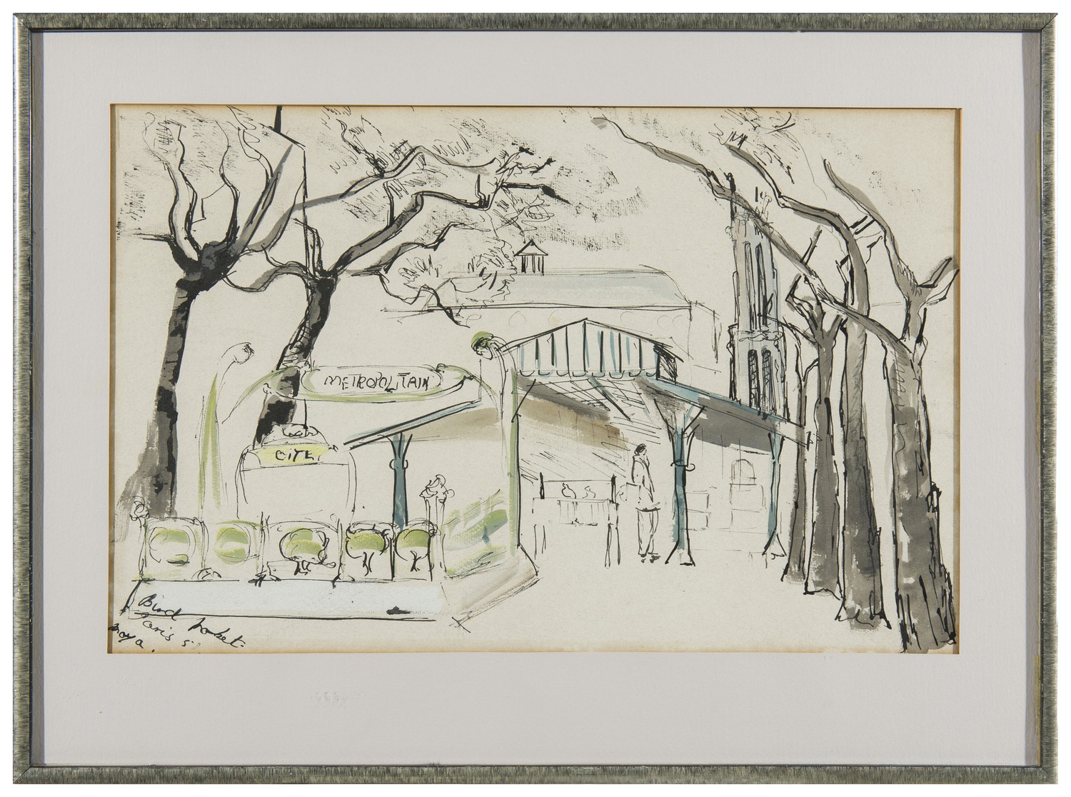 signed, dated, and titled lower left: Bird Market/ Paris 51/ Moya.