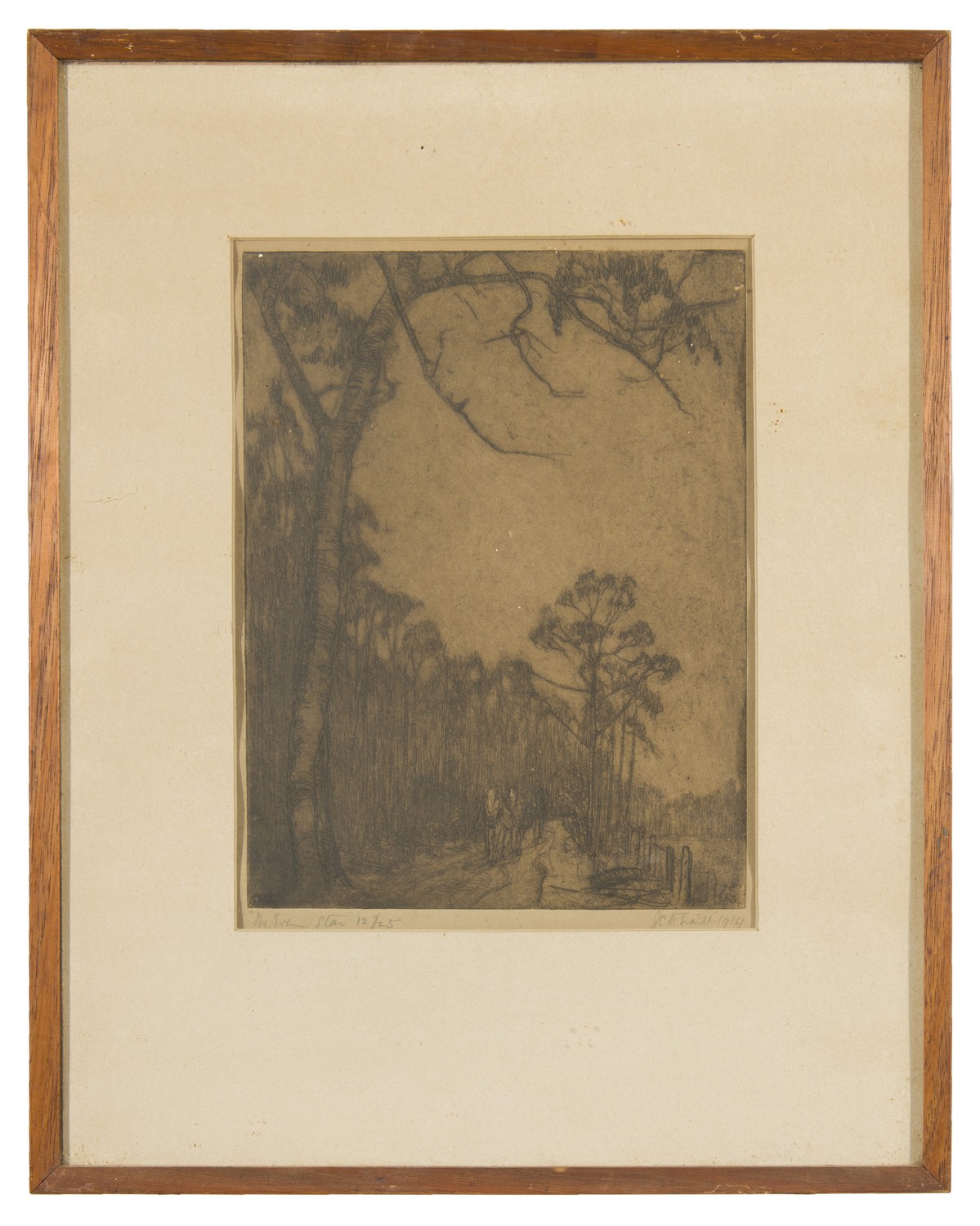 With a discerning eye for line, form and tone, Traill's etchings are recognised widely for addressing the transformation of the landscape during a time where industrialisation was taking a hold. Her works pay homage to the innocence of nature and the simplistic beauty of elements such as moonlight, silhouettes, late evening forms and glistening stars.