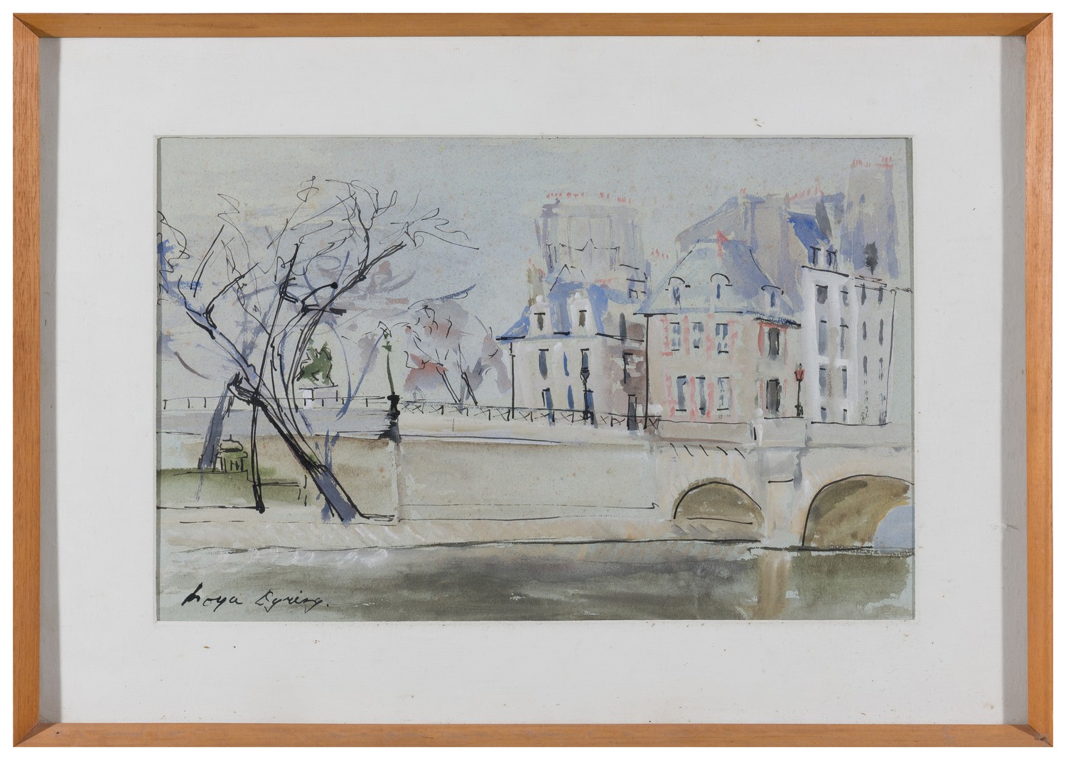 Work bears faint but consistent foxing throughout paper. Work appears to be housed in original frame.