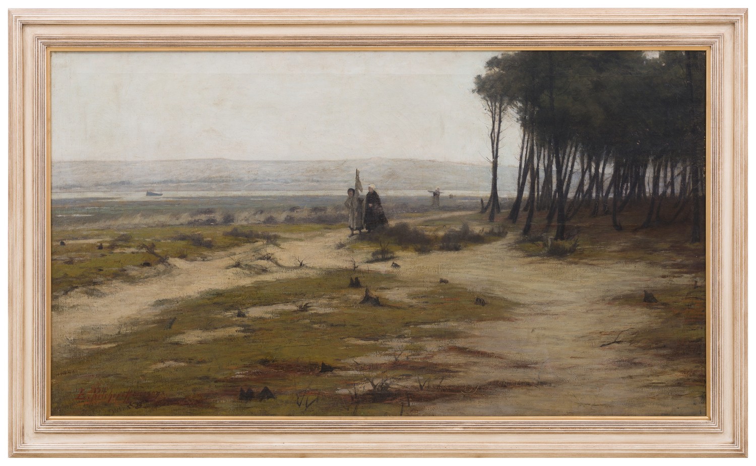 While sketching in the countryside near Paris, she met the American plein-airist (Lowell) Birge Harrison. They were married not long afterwards. The couple travelled, pursuing their artistic desires. In 1887 the Harrisons settled for eighteen months in Etaples, presumably where this painting was created.