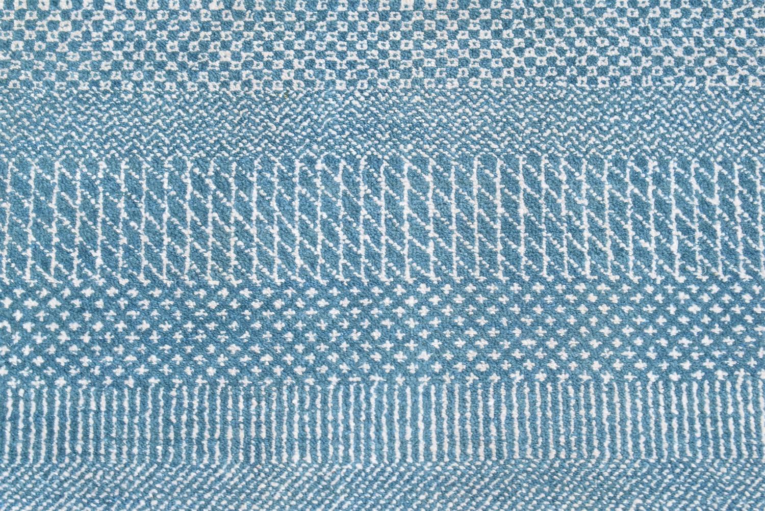A NEW TWO TONED SHALIMAR HALL RUNNER, 100% WOOL IN EXCELLENT CONDITION, MODERN STRIPED DESIGN IN TONES OF BLUE AND CREAM, SIZE 185 X 79 CM, ORIGIN INDIA RRP $1,150