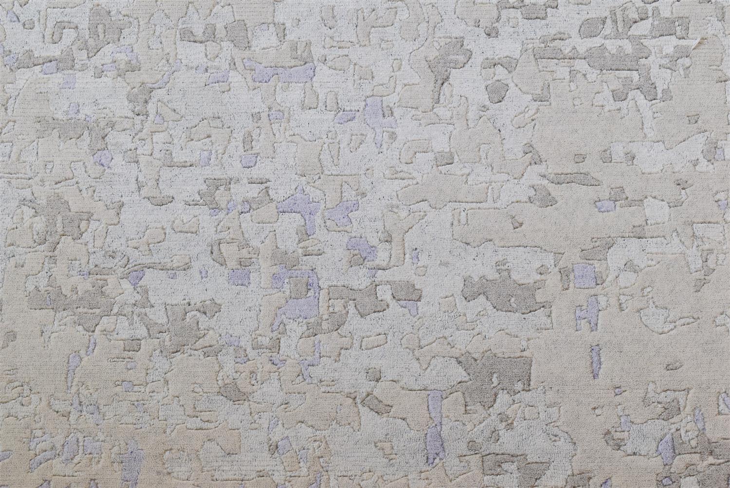 A BRAND NEW MODERN NEPALI HAND KNOTTED CARPET, SOLID AND DENSE WOOL PILE AND SILK TEXTURE IN PRISTINE CONDITION, MODERN ALL OVER ABSTRACT DESIGN IN TONES OF CREAM, BEIGE AND MAUVE, SIZE 361 X 273 CM, ORIGIN INDIA, RRP $7,200