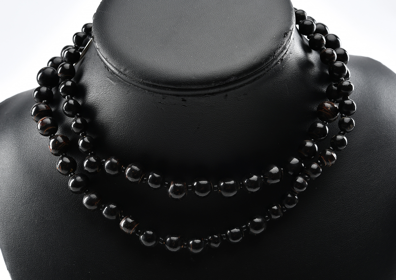 A STRAND OF BLACK CORAL BEADS - Comprising graduating beads measuring 8.25mm to 10.0mm, total length 830mm