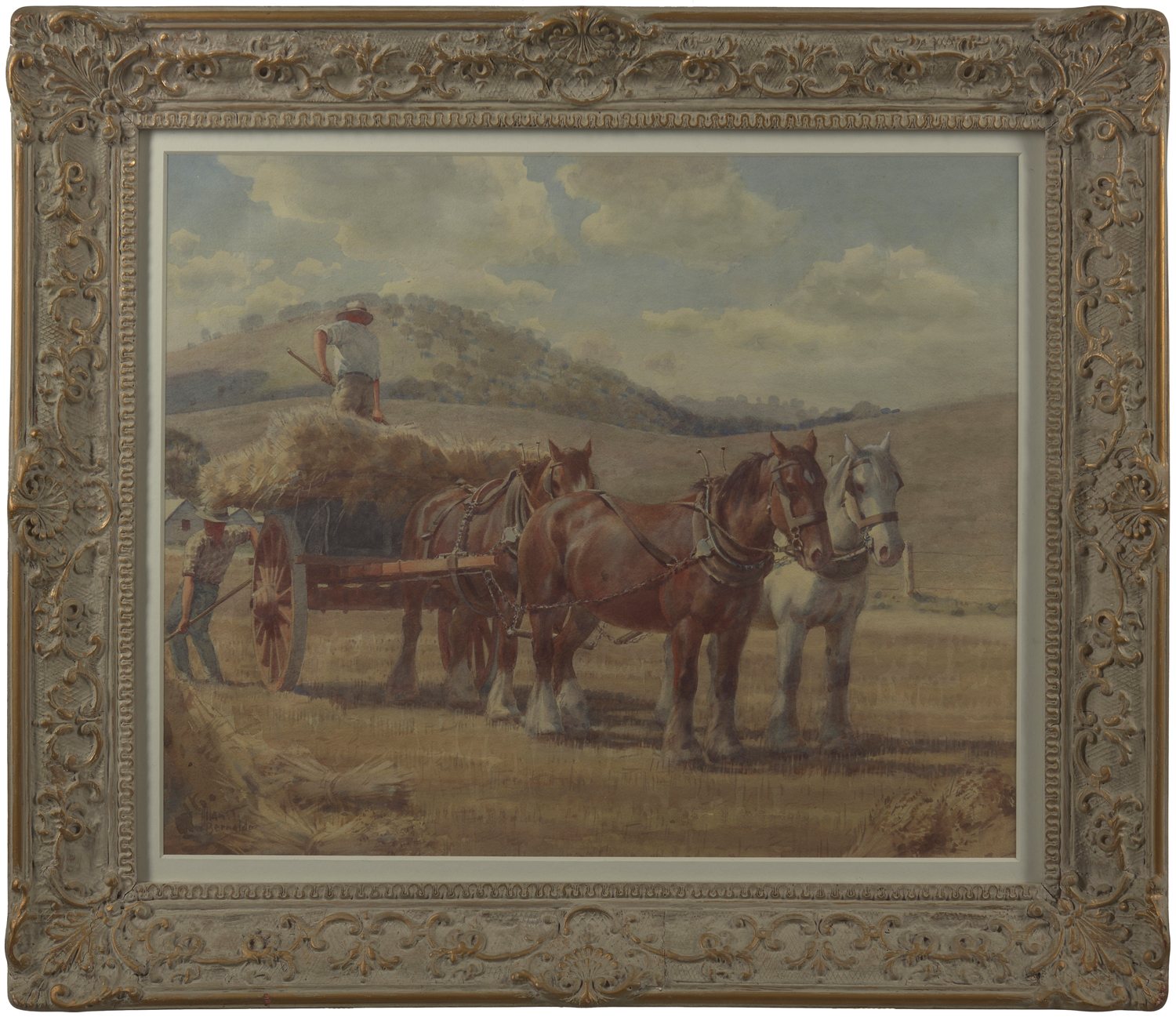 Slight discolouration and yellowing areas seen mostly in the sky area. A natural wave through the center of the paper indicates that it sits freely in the mount and frame ( and not glued down to the backing board). Work is well framed and colour to true to form.