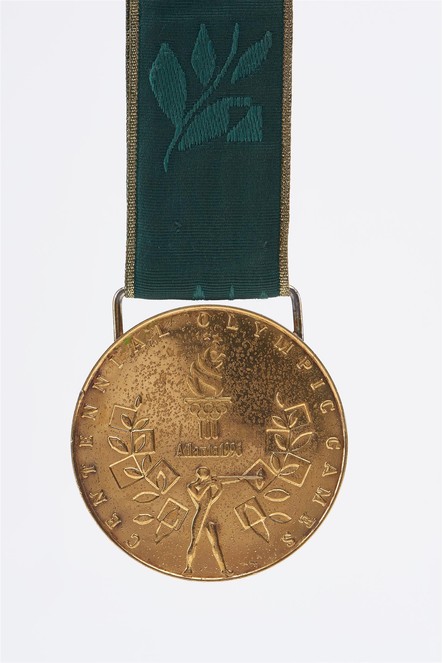 On the reverse, the official emblem of the 1996 Games and the 'Quilt of Leaves' design. For each sport, the medals awarded to the athletes were minted with the addition of the relevant sport's pictogram positioned in the centre of the 'Quilt of Leaves'.