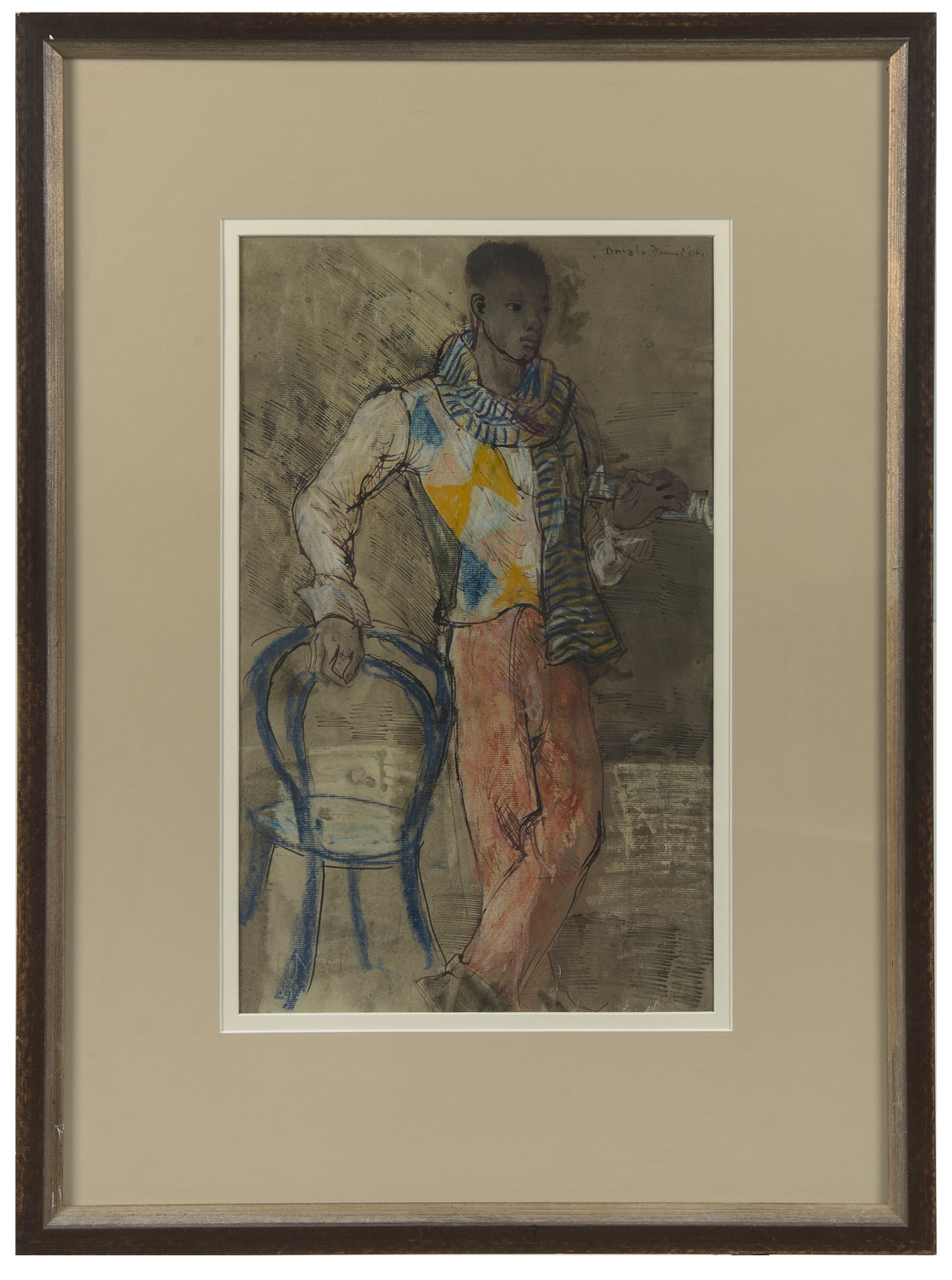 Cockling of the paper is evident throughout. Light creases present in the upper left mid area. Work well framed.