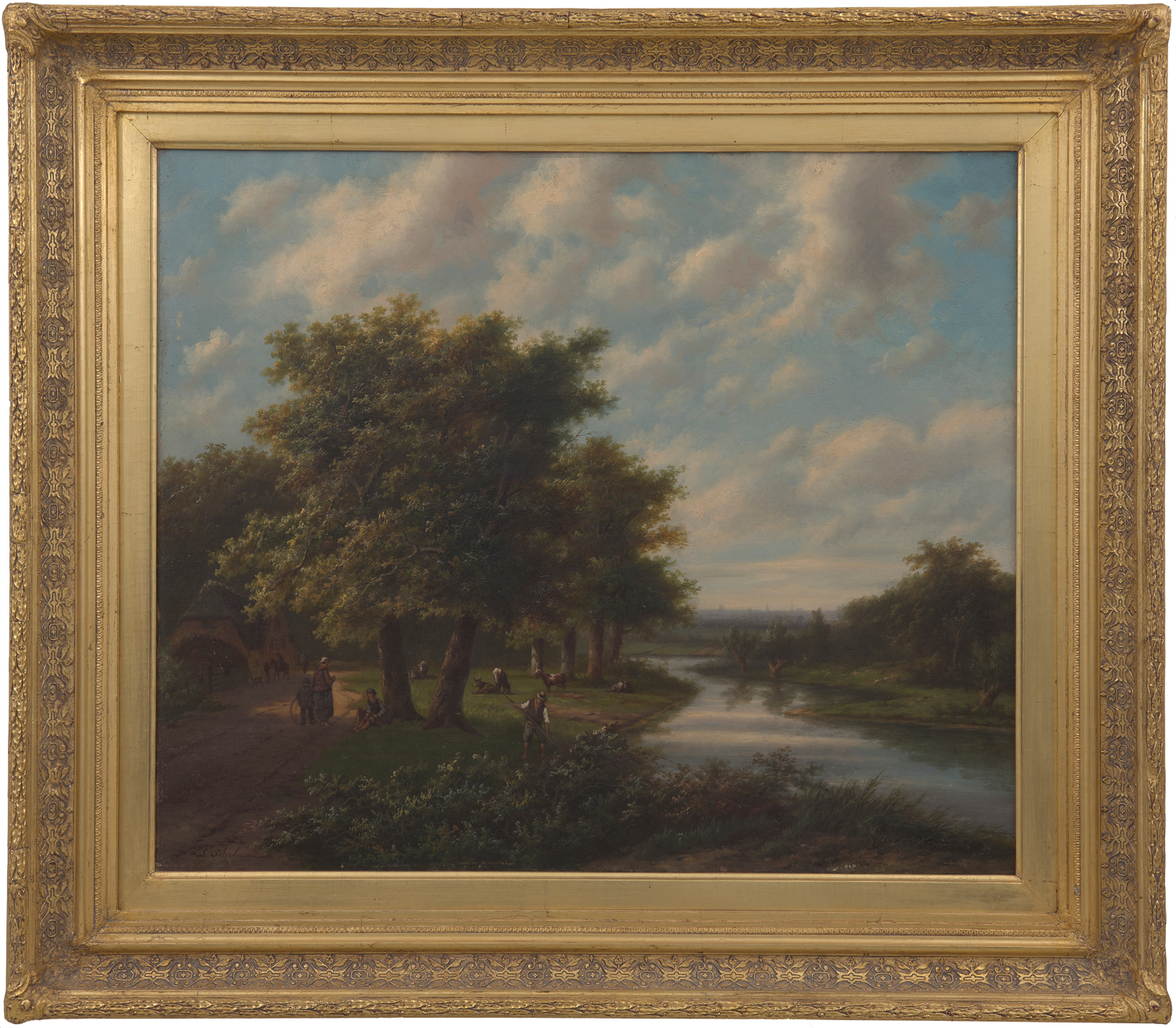 Work in very good condition with no previous repairs or re-lining of the canvas. Some very insignificant losses to the paint present, mostly seen along the outer edges where a previous frame may have been sitting. A light layer of dust and some paint imperfections are seen across the surface, all expected given the age of the work.