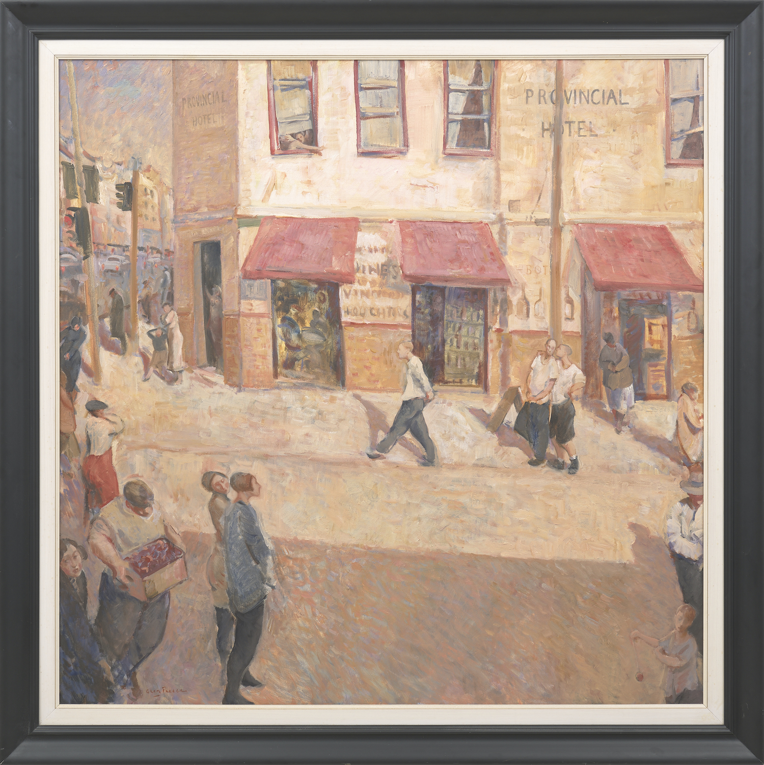 Work bears one small repair located in the upper right hand corner, approximently 5cm in size (concealed from the front and patch visible from the back). Work in very good condition despite this repair. Well framed and ready to hang, overall size: 140 x 139cm