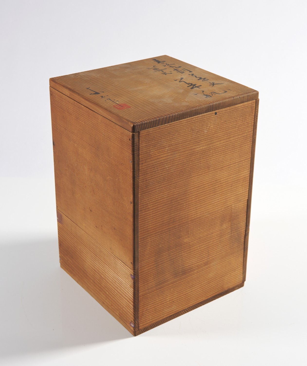 Of archaic Chinese zun form, with carved relief scrolling foliage covered in an even pale celadon glaze. Impressed Tozan mark to the base. Together with a wooden box signed by Miyanaga Tozan II (1918-1979), authenticating his father's work.