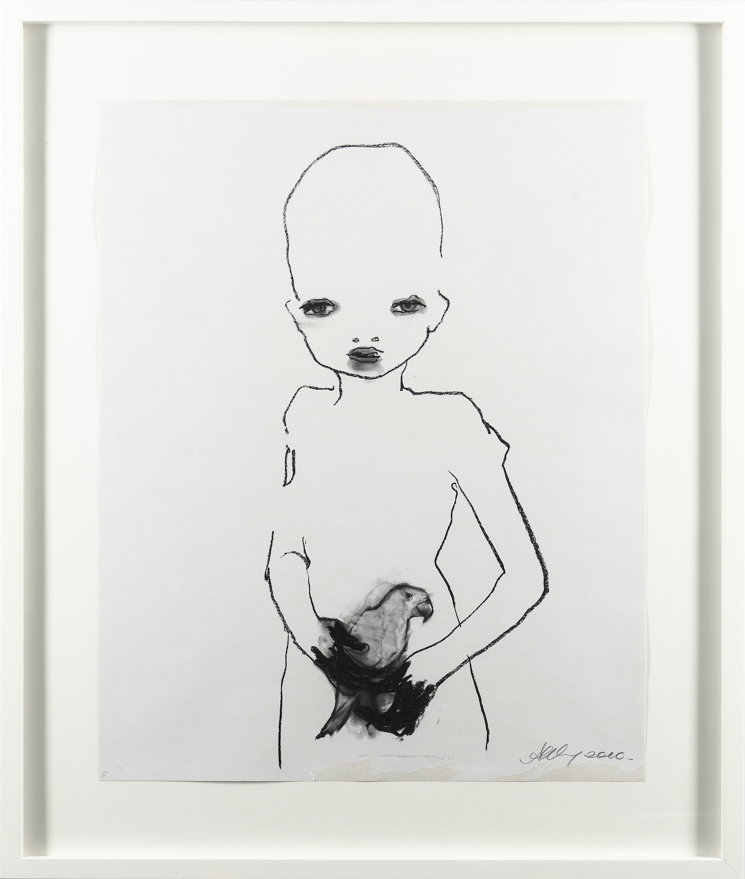 In fair condition overall. Upon close inspection the top and bottom edges of the paper display wear and abbrasions - however this is likely inherent to the paper (possible torn from a sketchbook). The signature in the lower right elapses over the top of the abbrasion further indicating this is inherent as it was signed over the top. Framing is in good condition.