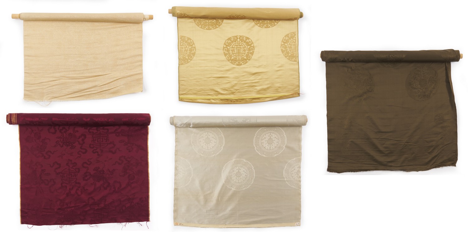 Of various colours decorated with diaper patterns, precious emblems and Shou characters.