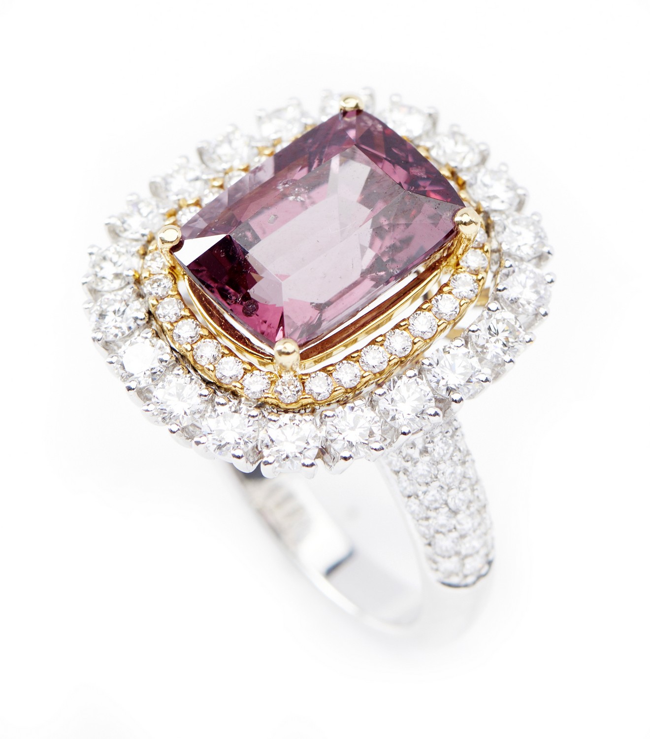 A KUNZITE AND DIAMOND PENDANT NECKLACE - Featuring a large pear cut kunzite weighing 172.78cts, in a double claw setting with a diam...