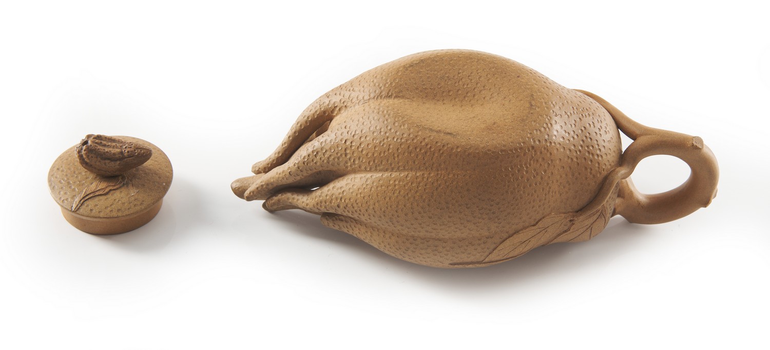 Naturalistically modelled as a finger citron in light brown clay, with impressed seal mark reading 'Jinfu', possibly for Fan Jinfu.